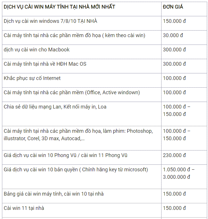 - Kỹ thuật viên sẽ đến tận nơi để cài đặt Win